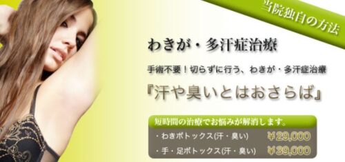 湘南美容クリニック熊本院は、脇汗ボトックス注射を両側1回15,210円の安さで提供しています。1万円台で、あのジュクジュク不快感から解放される夏は、まぁ言わずもがな感動体験です。
