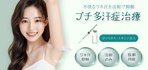 ボトックスは10分程度の簡単な施術で、その効果は3~4か月間の持続効果が期待できます。多汗症でなくても、汗をたくさんかく夏の1シーズンを快適に過ごすために脇汗ボトックス注射は有効です。